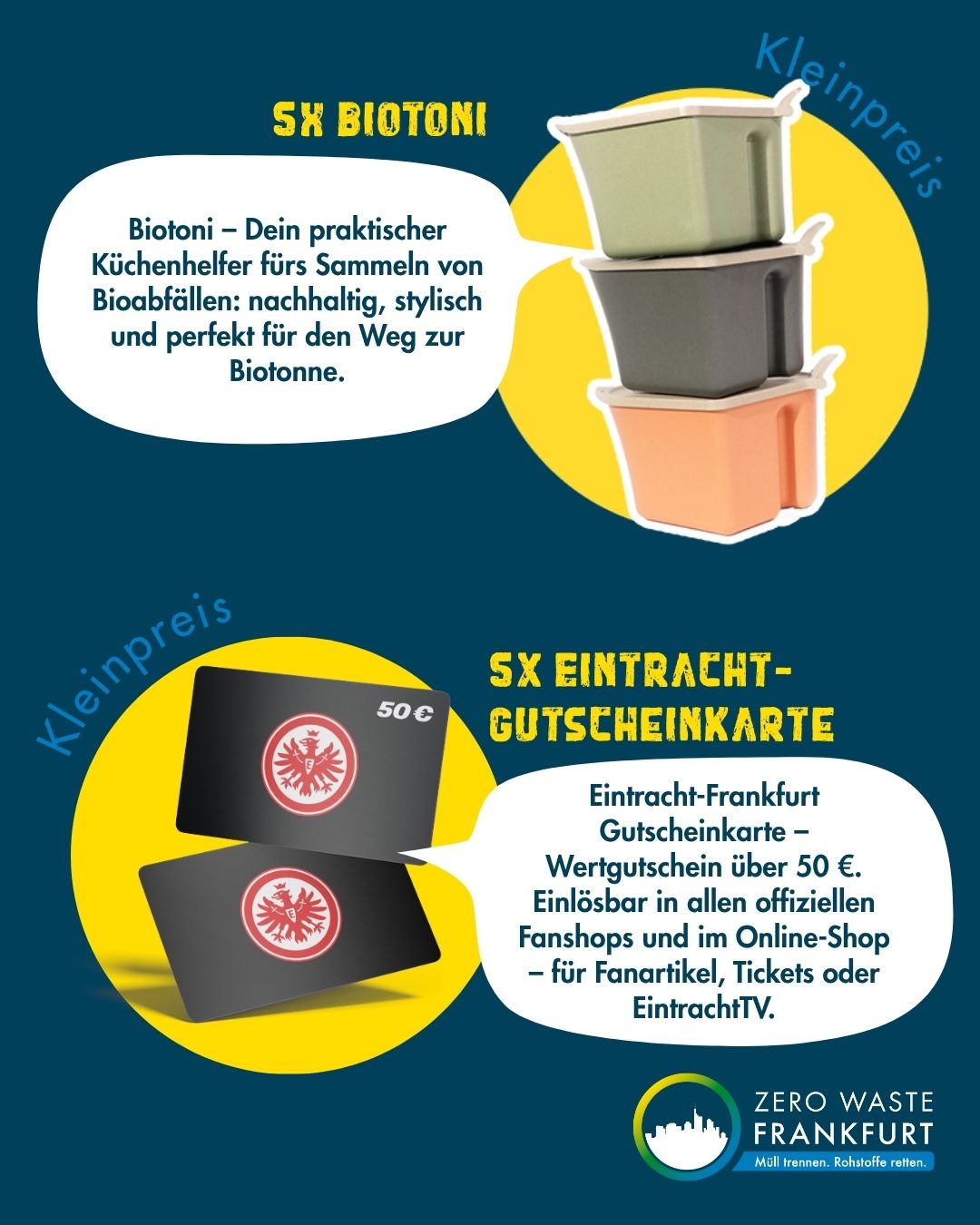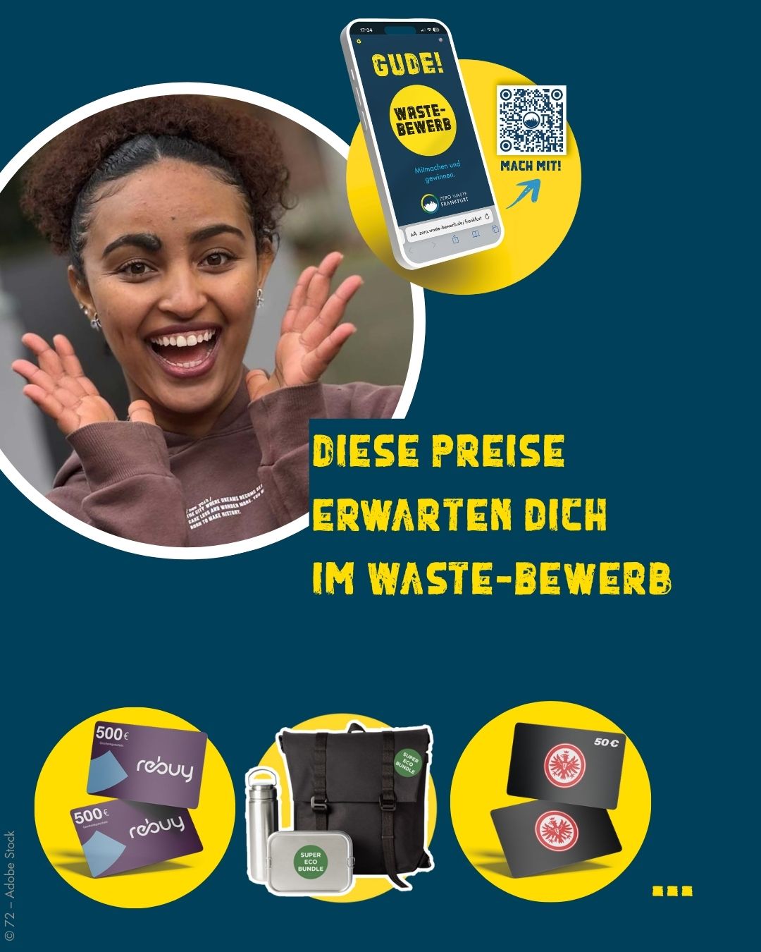 Und genau hier kommt der Waste-Bewerb ins Spiel: Teste dein Wissen zur richtigen Mülltrennung– und sichere dir gleichzeitig tolle Preise wie Eintracht-Gutscheine, Kulturtickets & Vieles mehr!